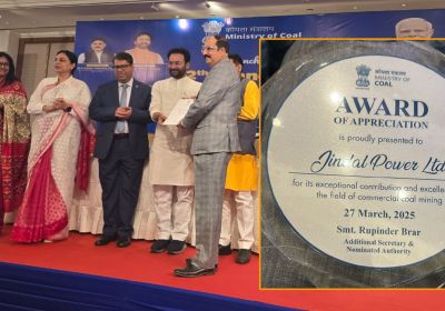वाणिज्यिक कोयला खनन के क्षेत्र में असाधारण योगदान और उत्कृष्टता के लिए जिंदल पावर लिमिटेड सम्मानित
