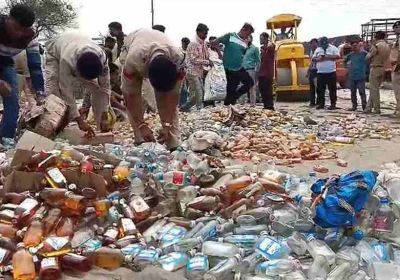 दो करोड़ की अवैध शराब पर चला बुलडोजर, 40 हजार लीटर मदिरा को पुलिस ने किया नष्ट