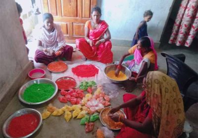 स्व सहायता समूह की महिलाएं बना रही होली के लिए फूलों और सब्जियों से हर्बल गुलाल