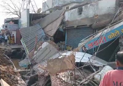 चार दशक पहले साडा के समय अल्का कॉम्प्लेक्स में बनी चार दुकानें अचानक भर-भराकर गिरी