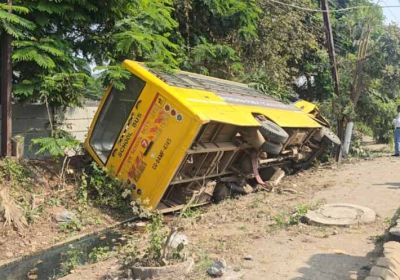 कृष्णा पब्लिक स्कूल की तेज रफ्तार बस पलटी, टला बड़ा हादसा, बच्चे नहीं थे सवार