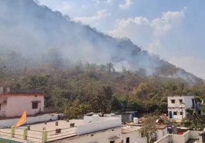असामाजिक तत्वों ने गढ़िया पहाड़ में लगाई आग, वन विभाग की टीम मौके पर