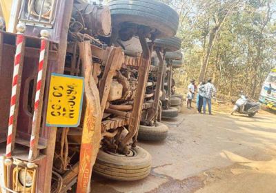 सुकमा जा रहा चावल से भरा ट्रक पलटा, 14 घंटे के बाद भी नहीं हटाया गया