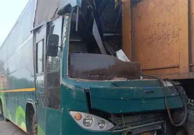 खड़े कोयले से भरे ट्रेलर से टकराई यात्री बस, एक की मौत, 23 घायल