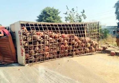 बालोद में गैस सिलेंडर से भरा ट्रक हाइवे पर पलटा, ट्रक चालक की मौत, एक युवक घायल