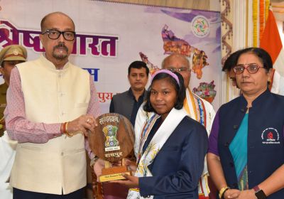 रायपुर : राज्यपाल डेका ने राष्ट्रीय बाल पुरूस्कार से सम्मानित बालिका का किया सम्मान
