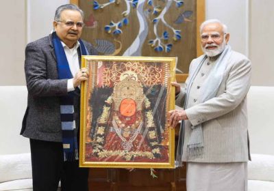 मां बमलेश्वरी का छायाचित्र भेंटकर दिया न्योता, छत्तीसगढ़-विस अध्यक्ष डॉ रमन सिंह मिले PM मोदी से