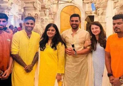 3 Apr, 2025 06:11 PM IST | SAMWADINDIA.INअयोध्या मुंबई इंडियंस के खिलाड़ी सूर्यकुमार यादव, दीपक चहर, तिलक वर्मा और करण शर्मा ने अयोध्या...