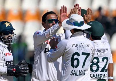 पाकिस्तान के स्पिनर्स का डंका बजा और मेहमानों ने अपने हथियार डाल दिए, नोमान अली ने हैट्रिक समेत खोला पंजा