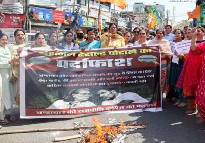 भाजपा का आरोप है कि कांग्रेस ने जनता के पैसों का किया गबन, नेशनल हेराल्ड मामले पर भाजपा का प्रदर्शन