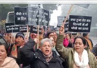 महिलाओं ने दिल्ली पहुंचकर किया केजरीवाल के घर का घेराव, चुनाव में पंजाब सरकार के झूठे वादों को लेकर किया प्रदर्शन