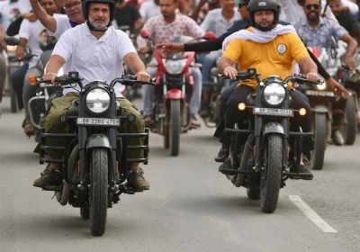 बिहार दौरे में राहुल गांधी की नई सवारी, राजेश कुमार बिना हेलमेट दिखे साथ