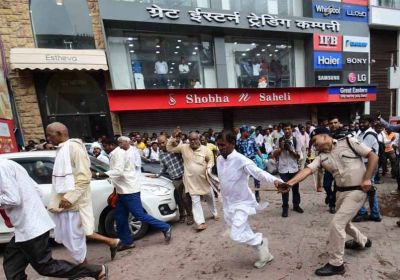 प्रदर्शन कर रहे राशन विक्रेताओं पर पुलिस की लाठीचार्ज कार्रवाई