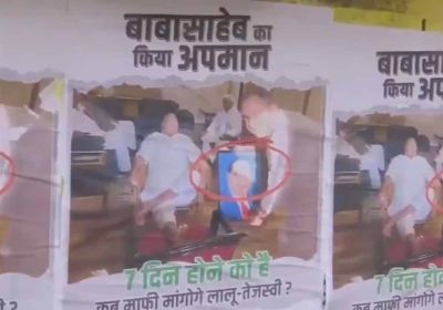 आंबेडकर के 'अपमान' पर बीजेपी ने चौराहों पर पोस्टर लगाए- 'कब माफी मांगेंगे लालू यादव'