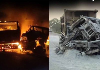 नेशनल हाईवे-31 पर ट्रक-हाइवा की टक्कर के बाद लगी आग, हाइवा चालक की मौत