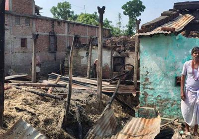 तीन परिवारों के चार घर जलकर राख, एक मवेशी की मौत, लाखों का नुकसान