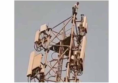 आत्महत्या के लिए मोबाइल टावर पर चढ़ा युवक, पुलिस ने मशक्कत के बाद उतारा नीचे