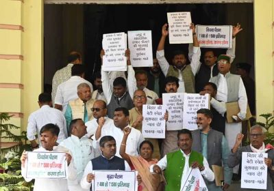 विपक्षी दलों ने बजट से पहले किया हंगामा, विधानसभा के गेट पर प्रदर्शन