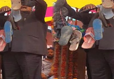 64 मंदिर बनवाने वाले मुस्लिम विधायक जब मंच पर जूते-चप्पल की माला लेकर पहुंचे
