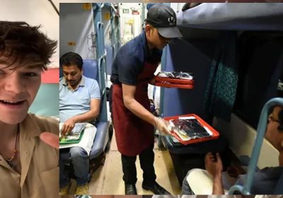 ब्रिटिश फूड व्लॉगर भारतीय रेलवे में फूड डिलेवरी की तेजी को लेकर काफी आश्चर्य में दिखा, बोला - ब्रिटेन के इस मामले में भारत से सीख लेना चाहिए