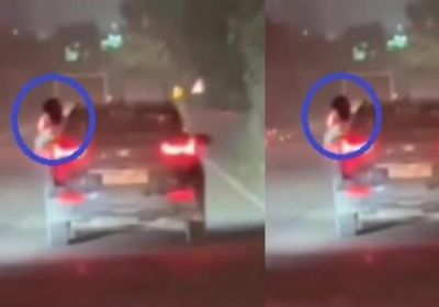 सड़क पर अश्लीलता का वीडियो, चलती कार से कपड़े उतार कर किया स्टंट