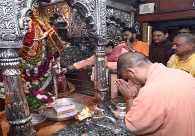 सीएम योगी को देख मंदिर में मौजूद श्रद्धालुओं ने हर हर महादेव के जयघोष से किया अभिनंदन