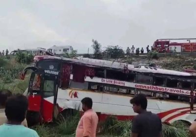आगरा लखनऊ एक्सप्रेसवे पर हुआ दर्दनाक हादसा, इटावा में डबल डेकर बस गिरी, दो मरे