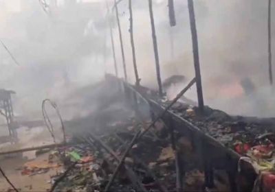 गांधी मैदान में लगे नुमाइश मेले में भीषण आग, 20 से अधिक दुकानें जलकर राख
