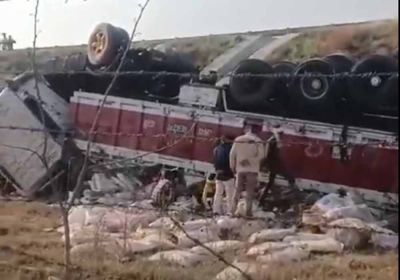 10 फीट खाई में गिरा में शराब से भरा ट्रक