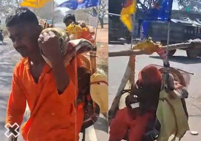 दो बेटों ने कांवड़ में बैठाकर मां को कराई चारधाम यात्रा, एक साल पैदल चले