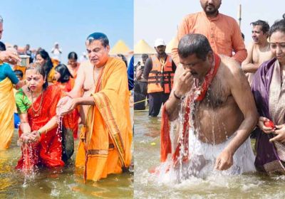 केंद्रीय मंत्री नितिन गडकरी और केंद्रीय मंत्री धर्मेंद्र प्रधान ने संगम में डुबकी लगाई