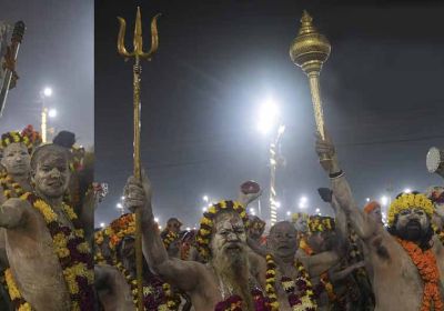 त्रिवेणी संगम में महाकुंभ के अंतिम अमृत स्नान में नागा साधुओं का अद्भुत प्रदर्शन