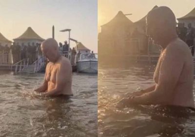 अनुपम खेर संगम में लगाई आस्था की डुबकी