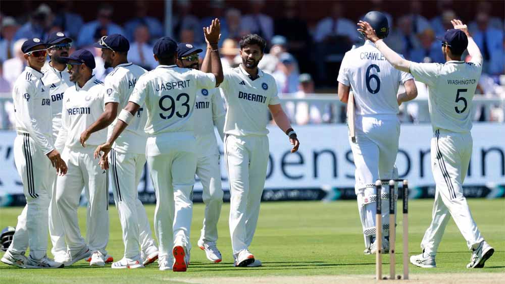 पहले बल्लेबाजी करने उतरी इंग्लैंड को जैक क्रॉउली और बेन डकेट ने अच्छी शुरुआत दिलाई। दोनों के बीच पहले विकेट के लिए 43 रन की साझेदारी हुई। बेन डकेट 40 गेंद में 23 रन बनाकर आउट हुए। जैक क्रॉउली 43 गेंद में 18 रन ही बना सके। नीतीश ने एक ही ओवर में सलामी बल्लेबाजों को आउट किया। जो रूट और ओली पोप क्रीज पर मौजूद हैं। लीड्स में इंग्लैंड ने भारत को 5 विकेट से हराया था, जबकि भारत ने बर्मिंघम में दूसरा टेस्ट 336 रनों से जीता था। इस तरह से पांच मैच की सीरीज अभी बराबरी पर है।