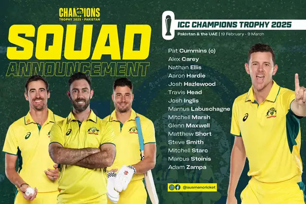 पैट कमिंस (कप्तान), एलेक्स कैरी, नाथन एलिस, आरोन हार्डी, जोश हेजलवुड, ट्रैविस हेड, जोश इंग्लिस, मार्नस लाबुशेन, मिचेल मार्श, ग्लेन मैक्सवेल, मैट शॉर्ट, स्टीव स्मिथ, मिशेल स्टार्क, मार्कस स्टोइनिस, एडम जम्पा
