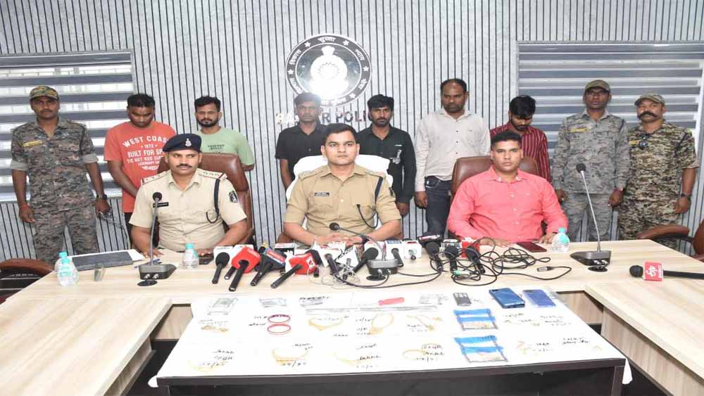अगल-अलग स्थानों से चोरी के मामले में आरोपियो को पड़कने में बस्तर पुलिस को बड़ी सफलता मिली है. 7 आरोपियों ने मिलकर शहर में सूने घरों से चोरी की वारदात का अंजाम दिया था. थाना कोतवाली, बोधघाट एवं परपा क्षेत्र में चोरी के मामले में सभी आरोपियों को कोतवाली पुलिस ने गिरफ्तार किया है. उसके कब्जे से आरोपियों से सोने के जेवरात कुल वजन 235 ग्राम कीमती 19,74000 जब्त किया गया है.