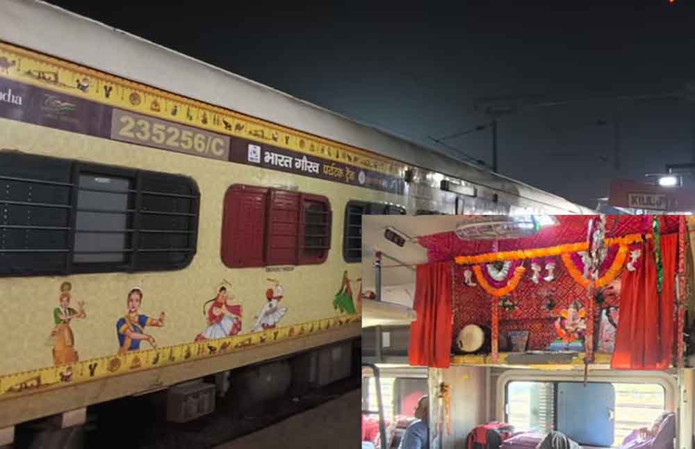 रेल यात्रा के दौरान आमतौर पर यात्री अपनी मंजिल का इंतजार करते हैं, लेकिन भारत गौरव टूरिस्ट ट्रेन  में सफर कर रहे श्रद्धालुओं के लिए यह यात्रा आस्था और भक्ति का विशेष अनुभव बन गई है। इस विशेष ट्रेन के एक स्लीपर कोच में भगवान गणेश का मंदिर स्थापित किया गया है, जहां यात्री पूरे श्रद्धा भाव से पूजा-अर्चना करते हुए अपनी तीर्थयात्रा कर रहे हैं।