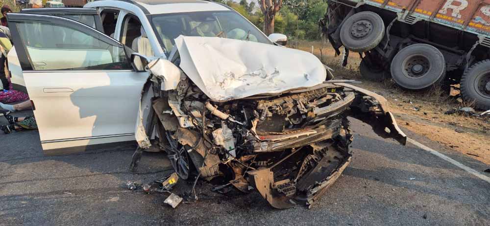 द्वारिका ने बताया कि सुबह करीब दस बजे नधिरा मोड़ के पास सामने से आ रहे ट्रक ड्राइवर ने ओवरटेक के चक्कर में नियंत्रण खो दिया और उनकी कार से सामने से टकरा गई। टक्कर इतनी जबरदस्त थी कि कार आगे से बुरी तरह क्षतिग्रस्त हो गई।