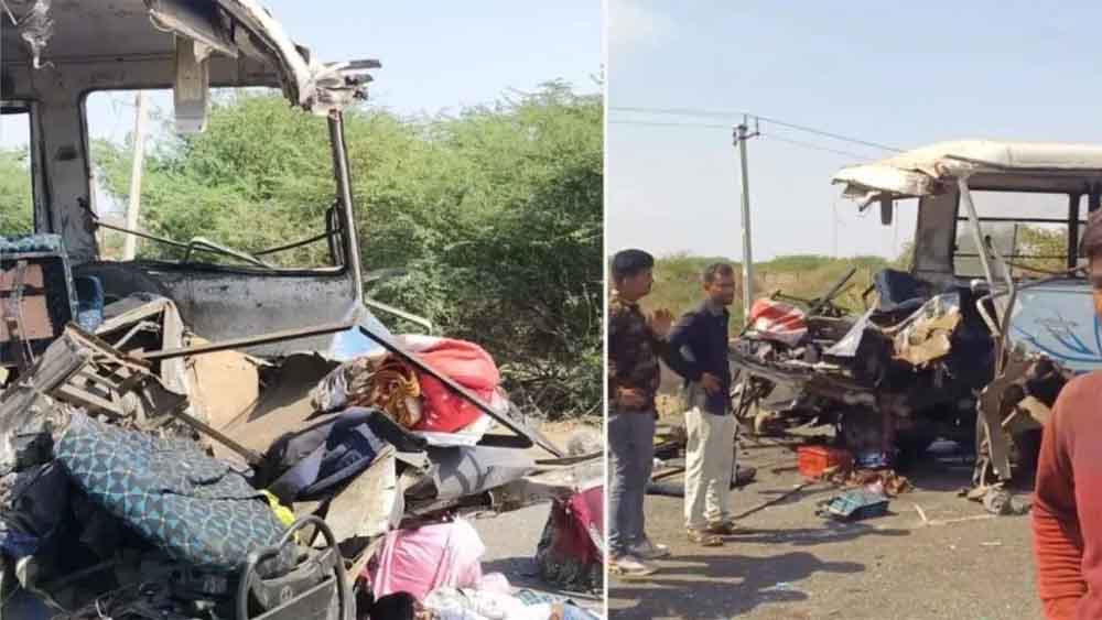 कच्छ के केरा मुंद्रा रोड के नजदीक बस-ट्रक के बीच जोरदार टक्कर, मौके पर ही छह लोगों की मौत, 20 अन्य घायल