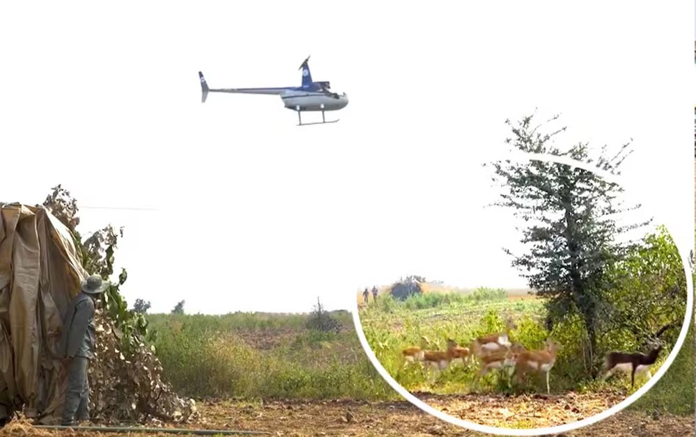 शाजापुर में खेती बचाने का हाईटेक तरीका, हेलीकॉप्टर से हांका कर हिरण पकड़वाए गए