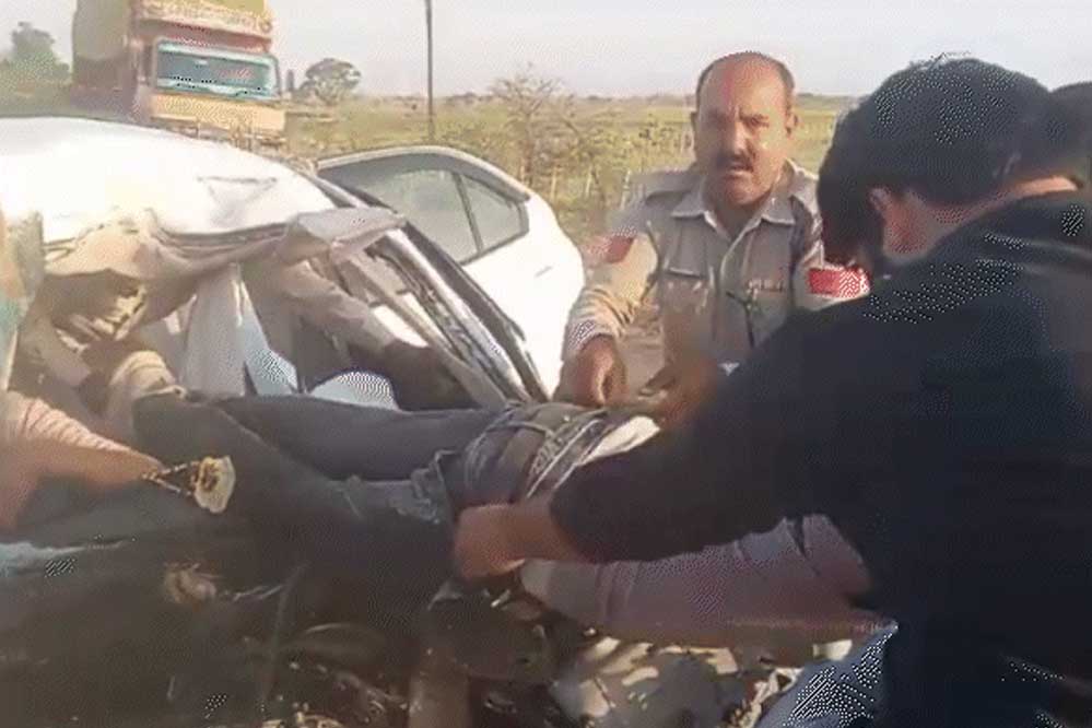 एयरबैग खुलने के बाद नहीं बची जान हादसे के बाद कार के एयरबैग खुल गए थे, लेकिन इसके बाद भी कोई जिंदा नहीं बच पाया। टक्कर इतनी तेज थी कि पिछली सीट पर बैठा एक युवक गाड़ी के सामने वाले शीशे (फ्रंट ग्लास) में फंस गया।