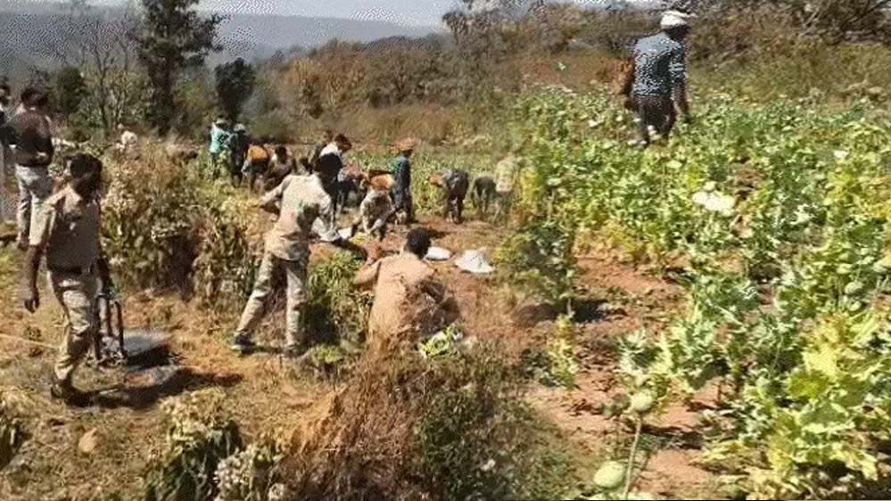 टुईला राम के खेत में बोई गई अफीम की फसल में अभी डोडे लगे हुए हैं और कुछ पौधों में डोडे लग रहे हैं। कई डोडों में चीरा भी लगाया गया था और उनसे अफीम निकालने का काम किया जा रहा था। हालांकि, यहां से निकाली गई अफीम बरामद नहीं हो सकी है।
