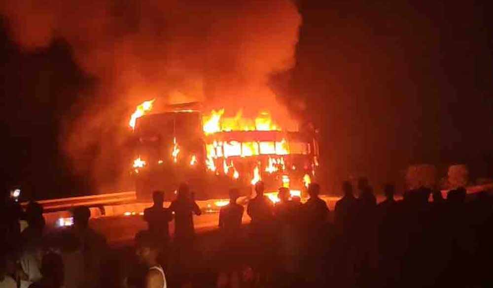 चलती बस में अचानक लगी आग, हादसे में सभी यात्री सुरक्षित