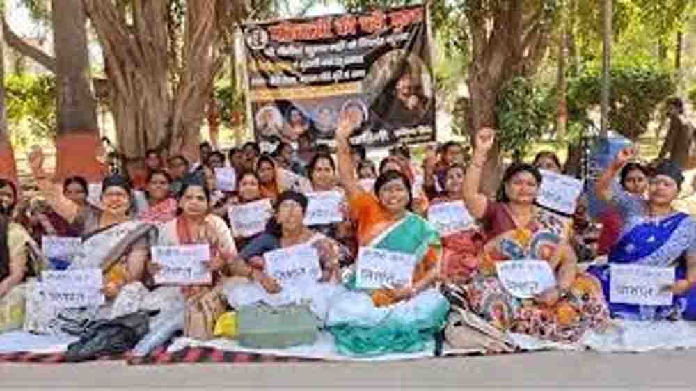 महिलाओं का सफेद कपड़ों में सत्याग्रह