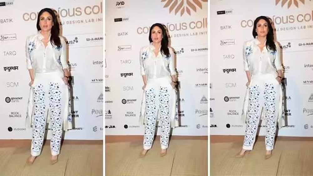 शर्ट के साथ करीना ने हाई-वेस्ट पैंट्स पहनी थीं, जो उनके पूरे लुक को बैलेंस कर रही थीं। इन पैंट्स पर छोटे-छोटे नीले फूलों का प्रिंट था, जो वाइट शर्ट के साथ खूबसूरत लग रहा था। कैमरे के सामने उन्होंने हाथ जेब में डालकर कॉन्फिडेंट पोज दिए, जिससे उनका स्वैग साफ नजर आया।