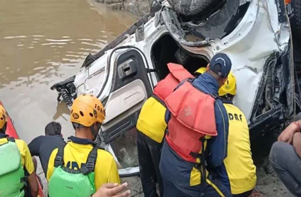 तेज रफ्तार कार सड़क से उतरकर गहरी खाई में गिरने के बाद नदी में समा गई, एक ही परिवार के पांच सदस्यों की मौत
