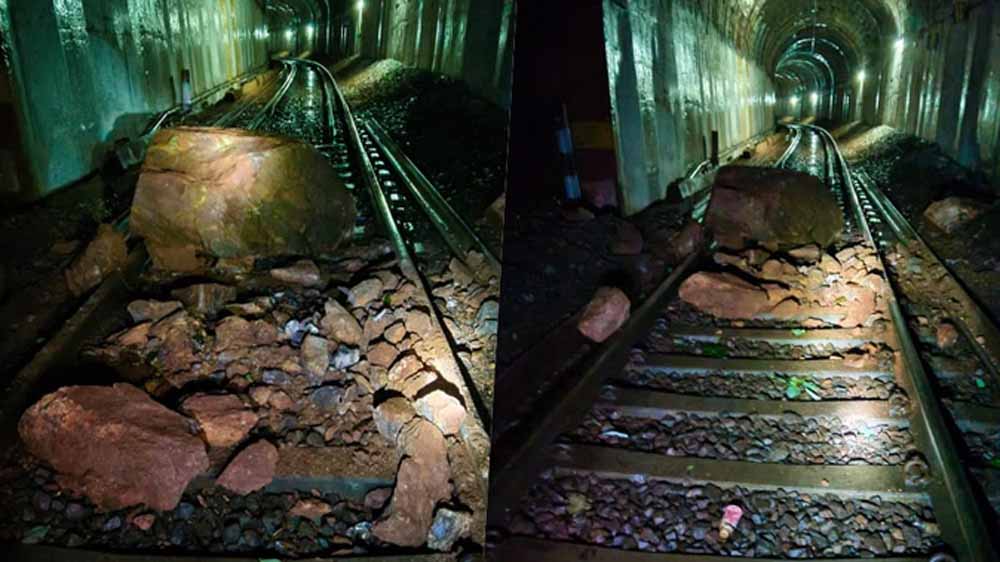 रेल ट्रैक पर गिरे पत्थर से बाधित हुआ आवागमन, यात्रियों की मुश्किलें बढ़ीं