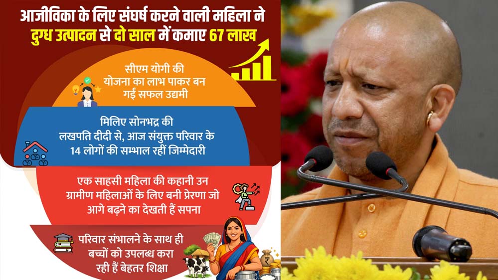 कभी आजीविका के लिए संघर्ष करने वाली सोनभद्र की विनीता आज मुख्यमंत्री योगी आदित्यनाथ के नेतृत्व में चल रही महिला सशक्तीकरण की योजनाओं के सहारे सफलता का नया चेहरा बनकर उभरीं हैं। दुग्ध उत्पादन को आजीविका का आधार बनाकर उन्होंने सिर्फ दो वर्षों में 67 लाख रुपये की कमाई की और यह साबित कर दिया कि सही सरकारी सहयोग, बाजार और मेहनत मिल जाए तो गांव की महिलाएं भी आर्थिक समृद्धि की नई कहानी लिख सकती हैं।