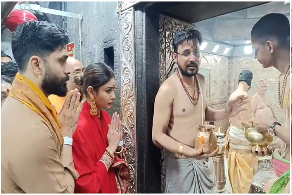 अभिनेत्री मौनी रॉय अपने पति और परिवार के साथ शनिवार सुबह महाकालेश्वर मंदिर पहुंची