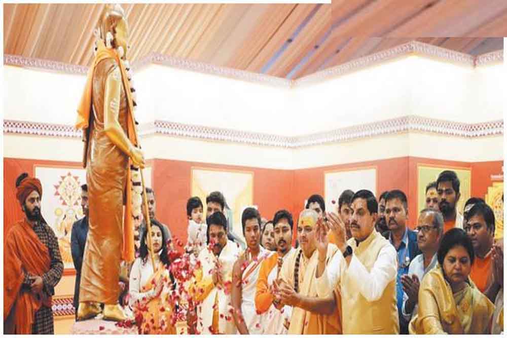 आचार्य शंकर सांस्कृतिक एकता न्यास, संस्कृति विभाग मध्यप्रदेश शासन द्वारा अद्वैत वेदान्त दर्शन के लोकव्यापीकरण एवं सार्वभौमिक एकात्मता की संकल्पना के उद्देश्य से उत्तरप्रदेश के प्रयागराज स्थित महाकुम्भ क्षेत्र के सेक्टर 18 में स्थापित एकात्म धाम मंडपम्, हरीशचंद्र मार्ग में आचार्य शंकर के जीवन दर्शन पर केंद्रित ‘शंकरो लोकशंकर:’ कथा का उद्घाटन कल मुख्यमंत्री डॉ यादव, श्री योगा नन्देश्वर मठ मैसूर के मठाधिपति श्री शंकर भारती महास्वामी की उपस्थिति में कल हुआ।